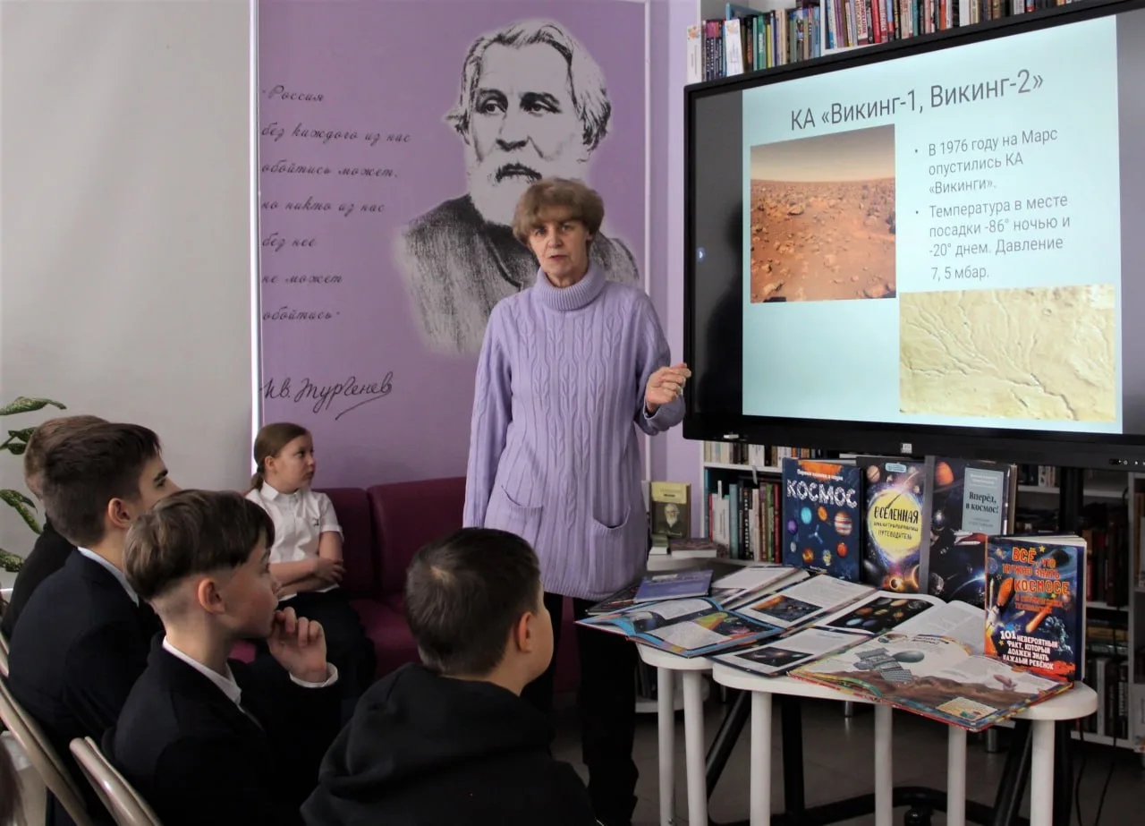 24 января 2026 года прошло очередное заседание клуба "Звездочёт" в библиотеке им. И.С. Тургенева. Котова Ольга Викторовна, педагог Центра технического творчества рассказала школьникам гимназии №15 о планете Марс.
